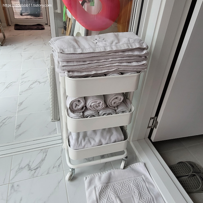 그리고 펜션 가면 수건이 부족해서 추가로 요청하는 경우가 종종 있는데 비치타월까지 진짜 엄청 넉넉하게 있었어요